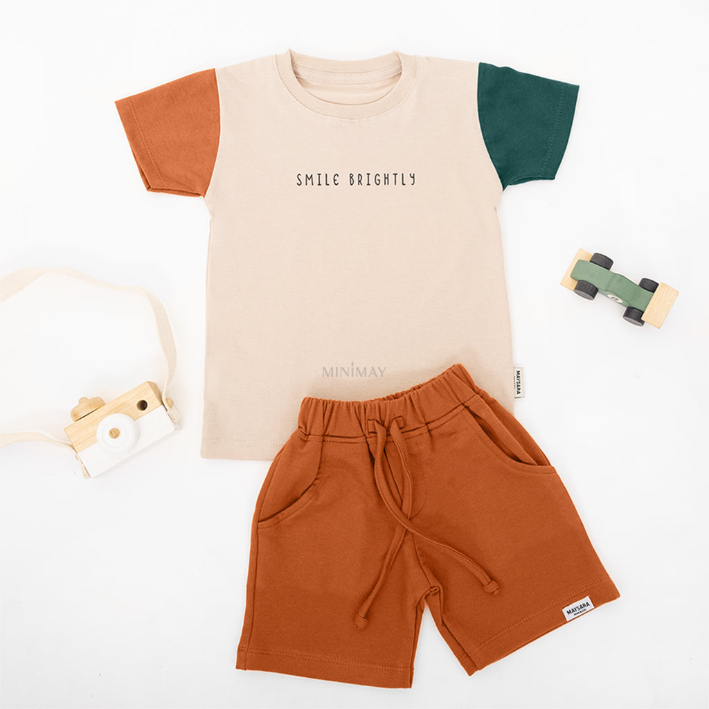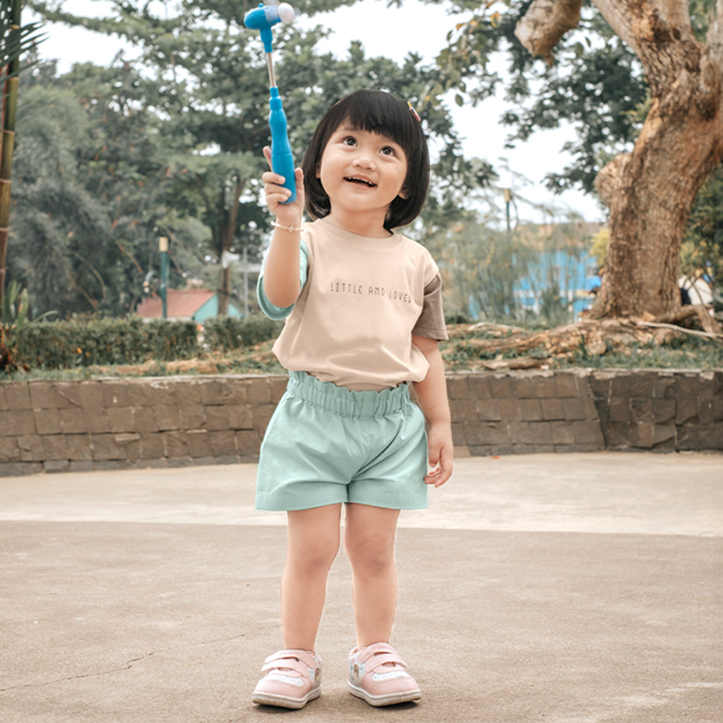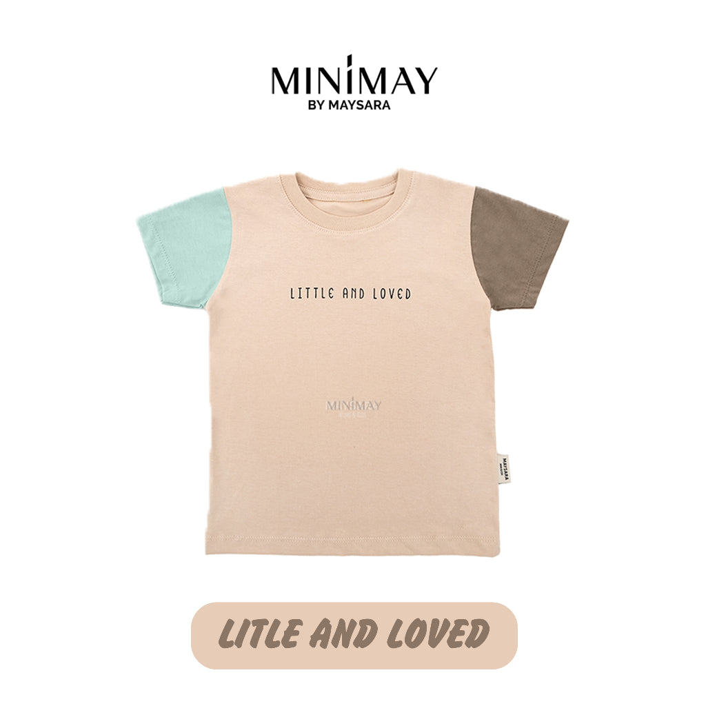 Kaos anak dengan kombinasi 2 warna lengan yang berbeda dan dipadukan menjadi 1
