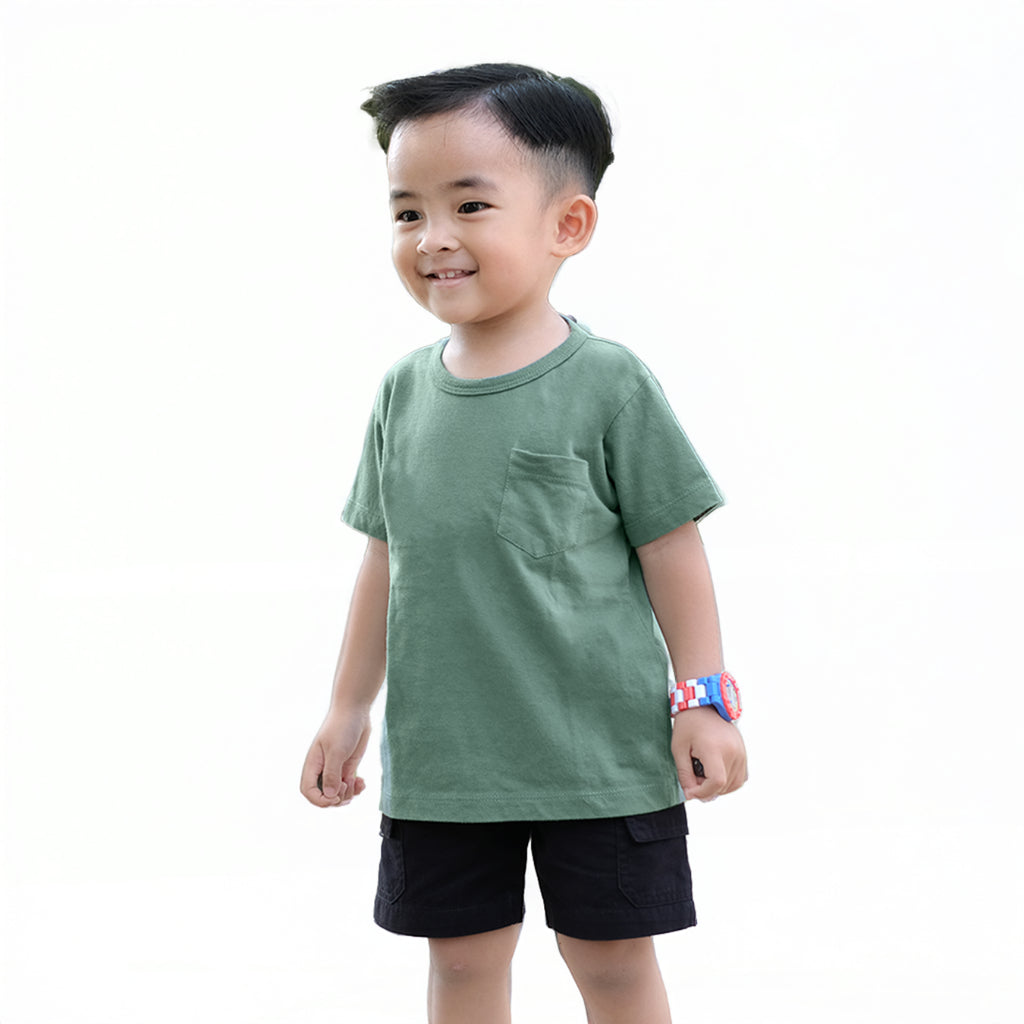 Kaos anak yang dilengkapi saku hidup di sebelah kiri