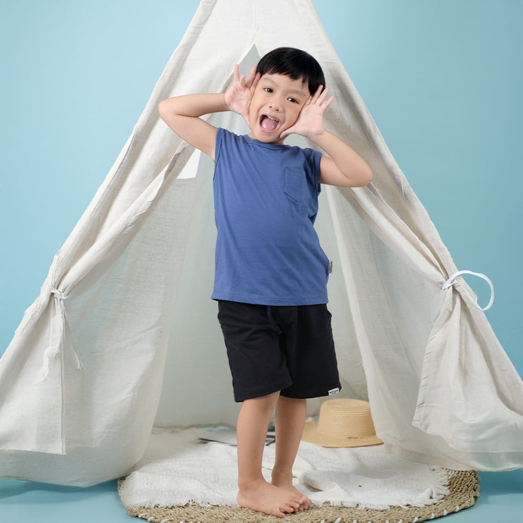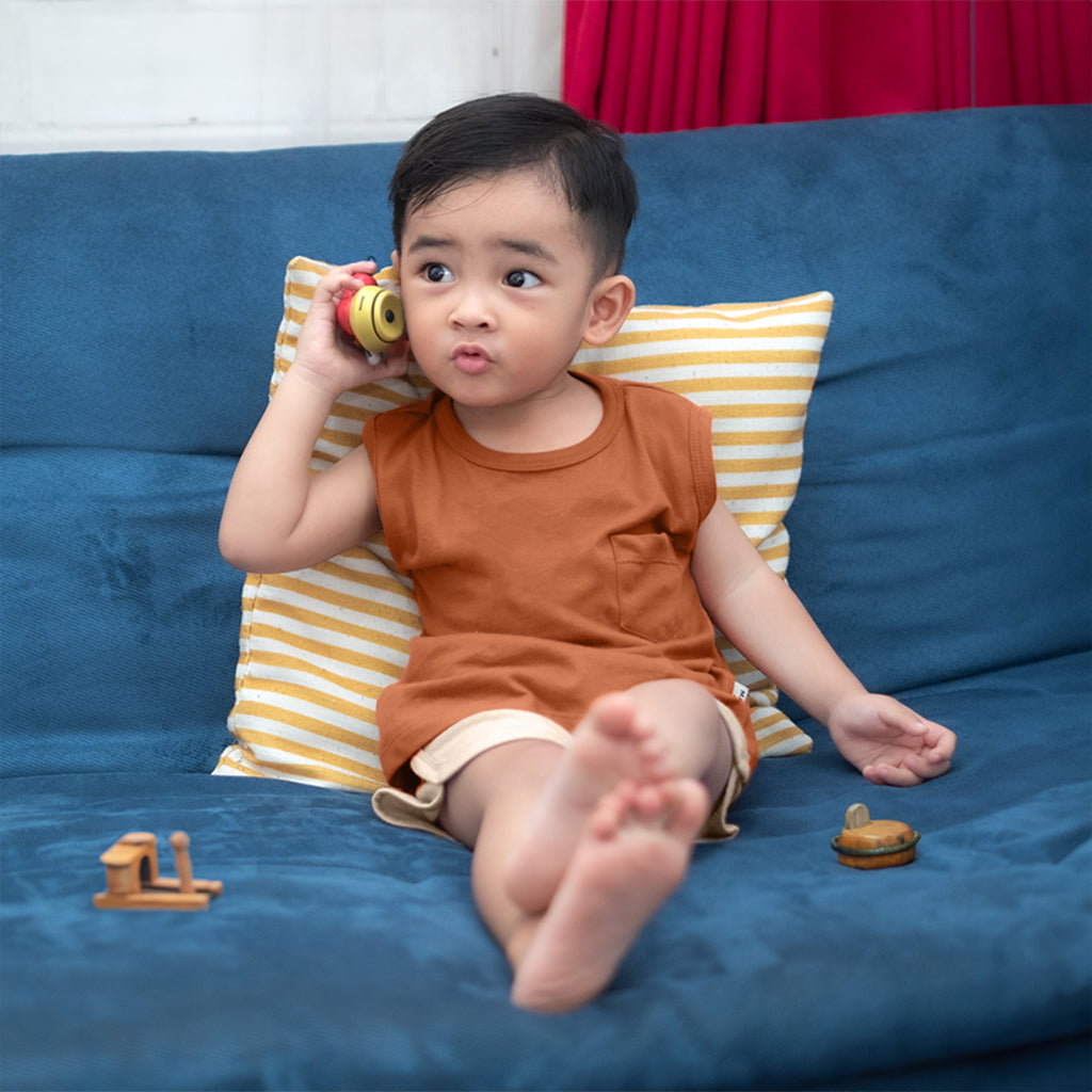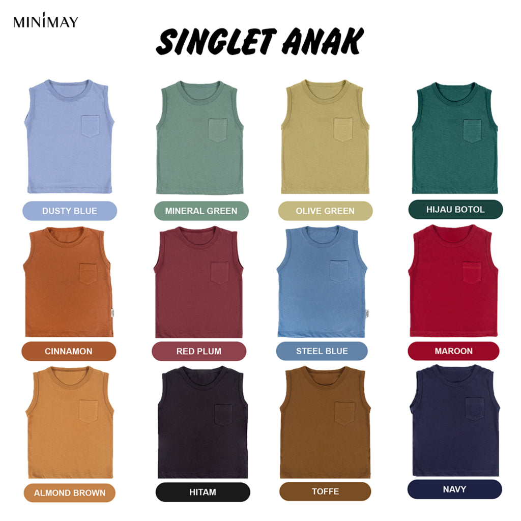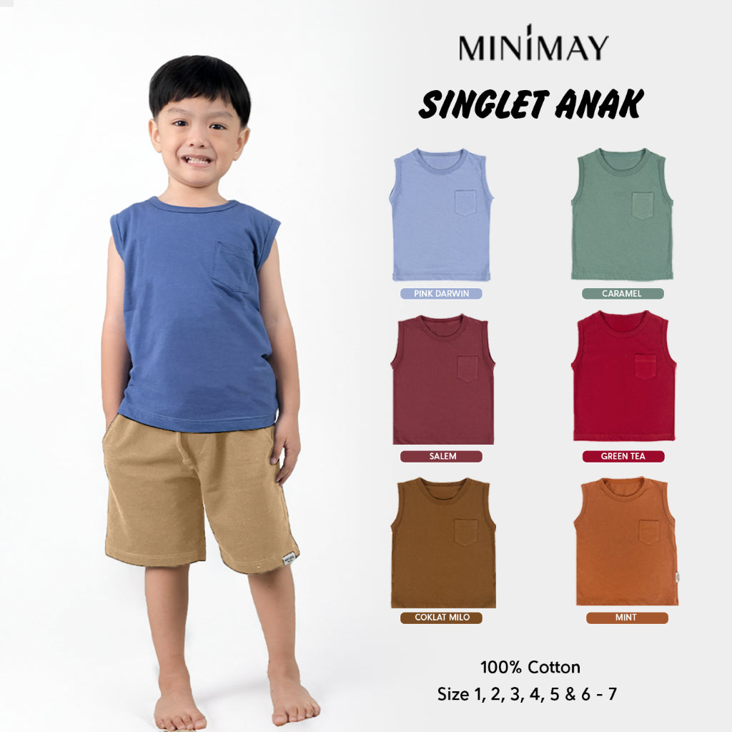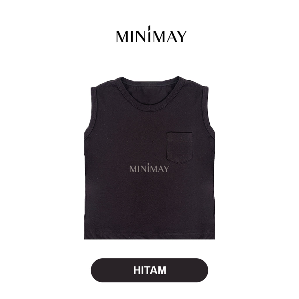 Kaos anak yang di desain tanpa lengan dan dilengkapi dengan saku disebelah kiri
