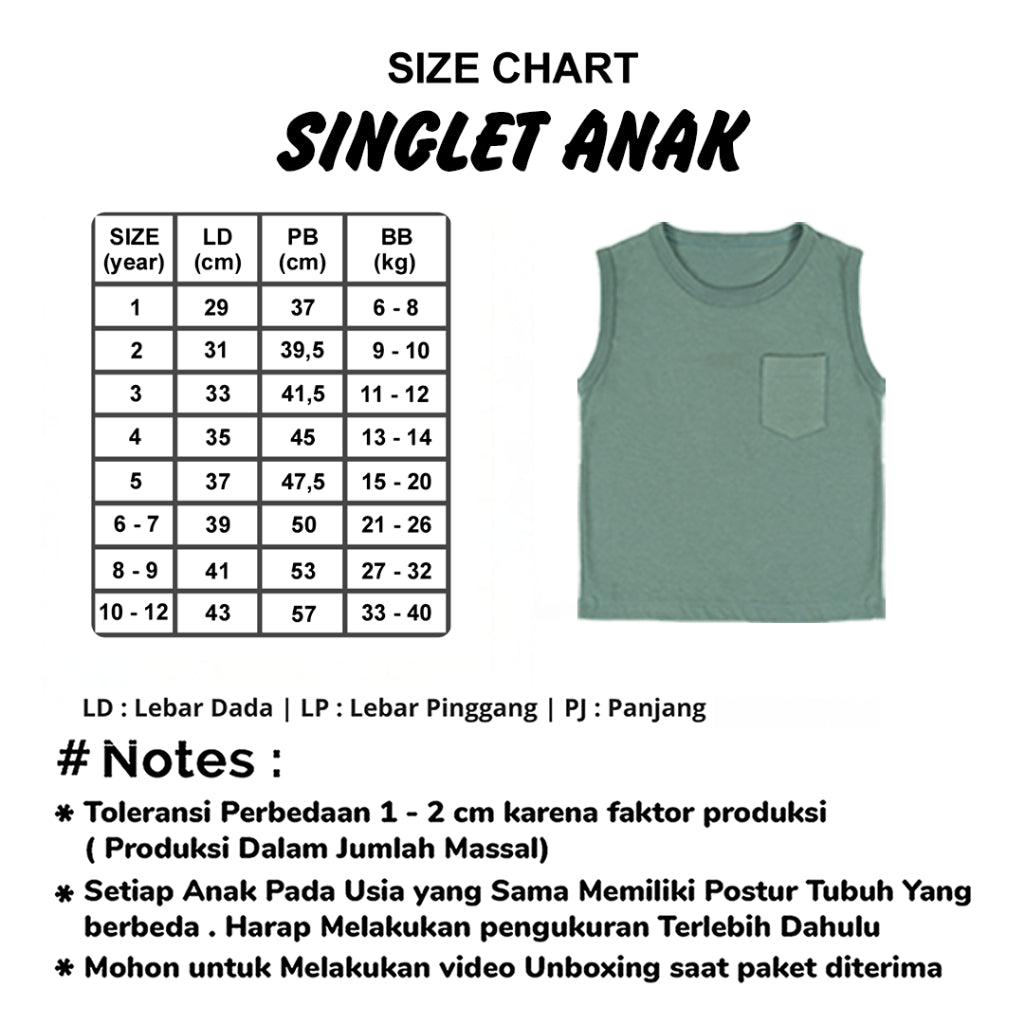 Setiap anak memiliki postur tubuh yg berbeda. Harap melakukan pengukuran dahulu. Jangan jadikan size chart sebagai acuan.