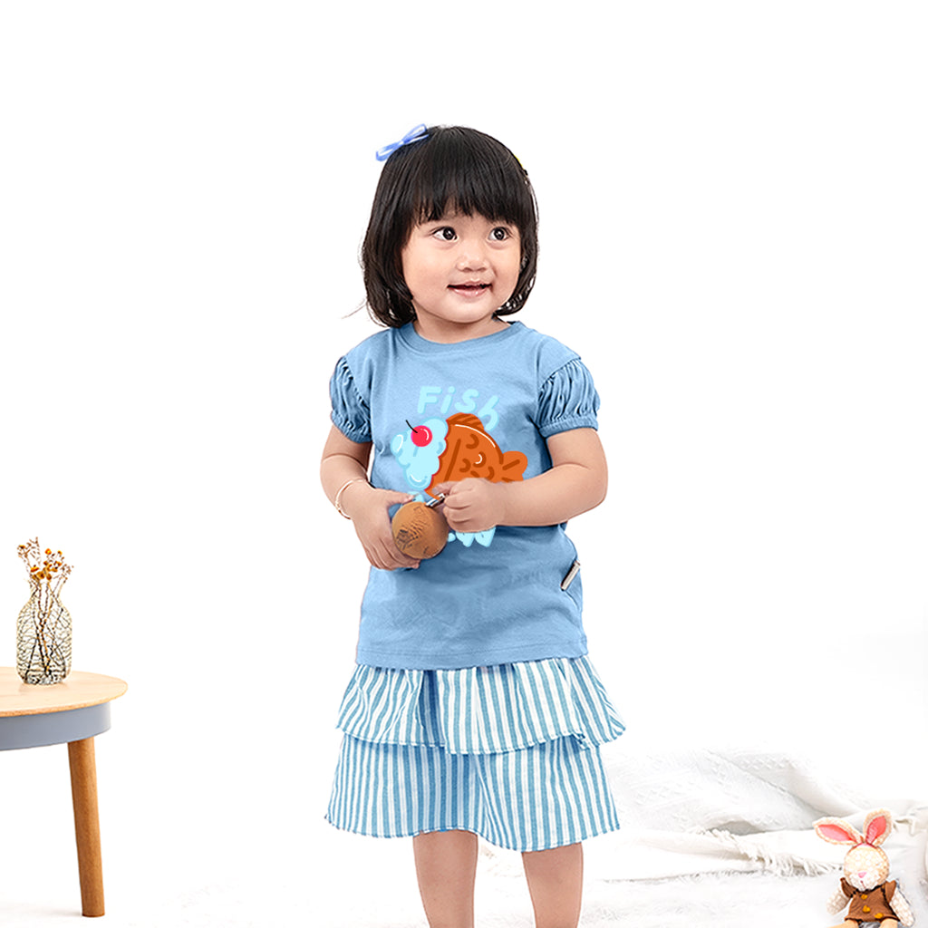 Kaos anak yang didesain dengan dilengkapi aksen sablon ikon cake dan adem digunakan sehari-hari