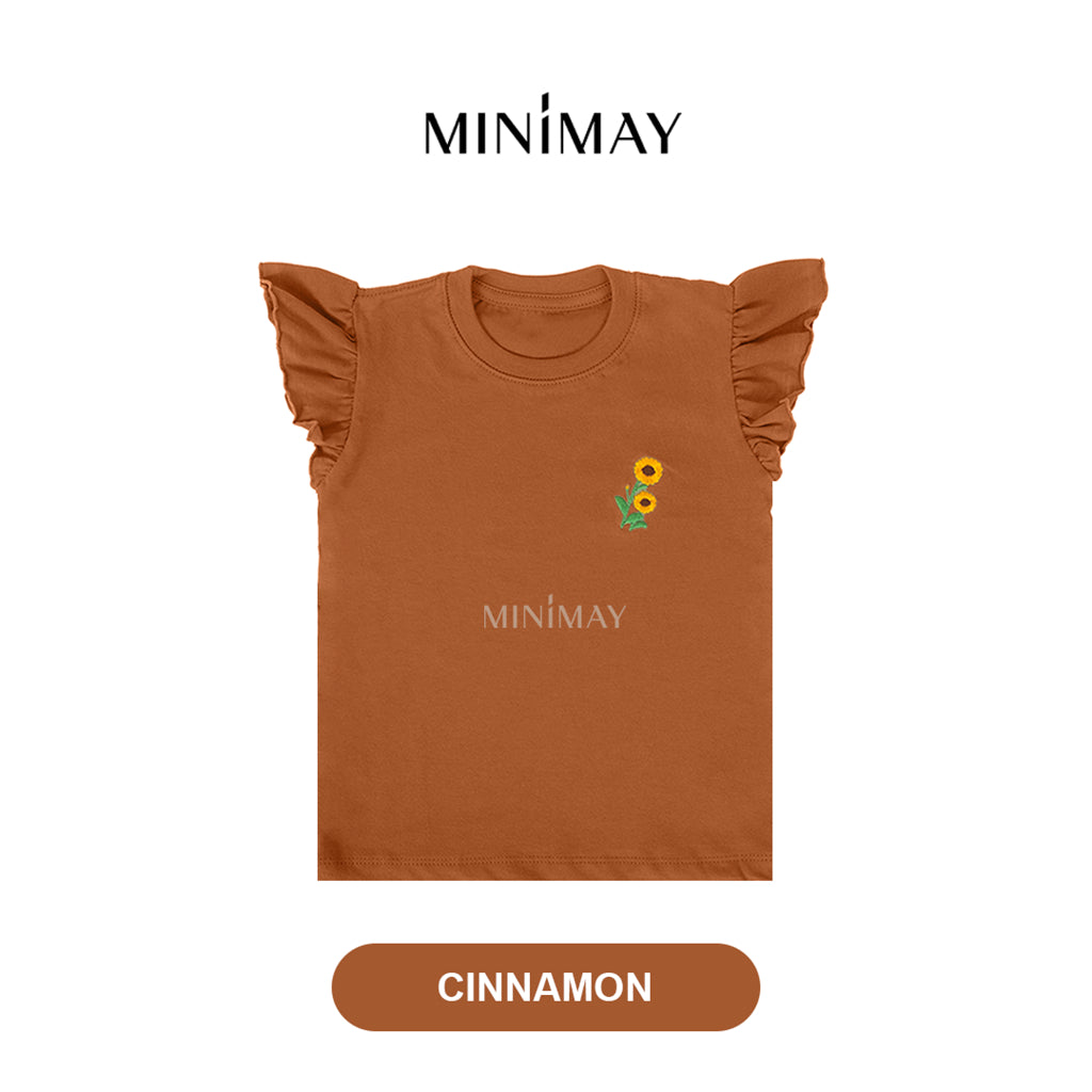 Kaos anak yang didesain dengan dilengkapi aksen bordir bunga dan lengan ruffle