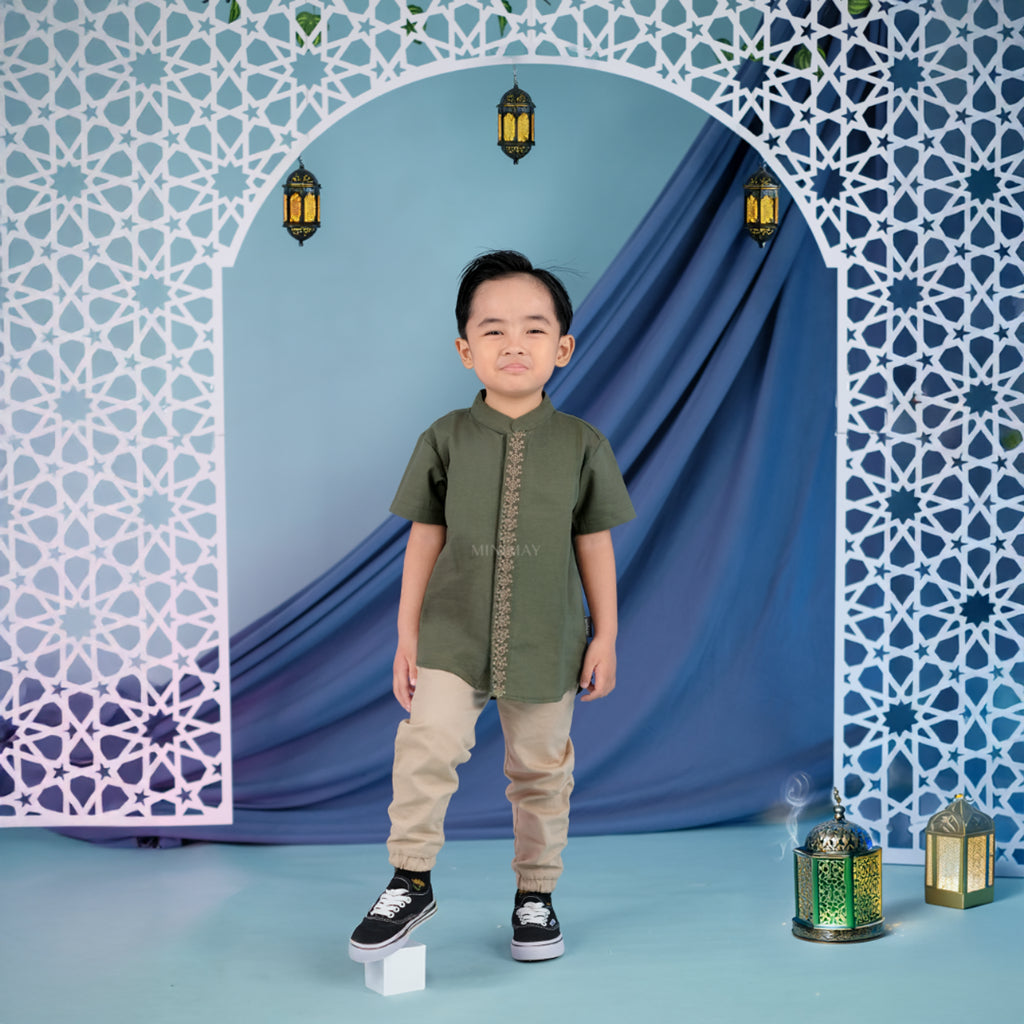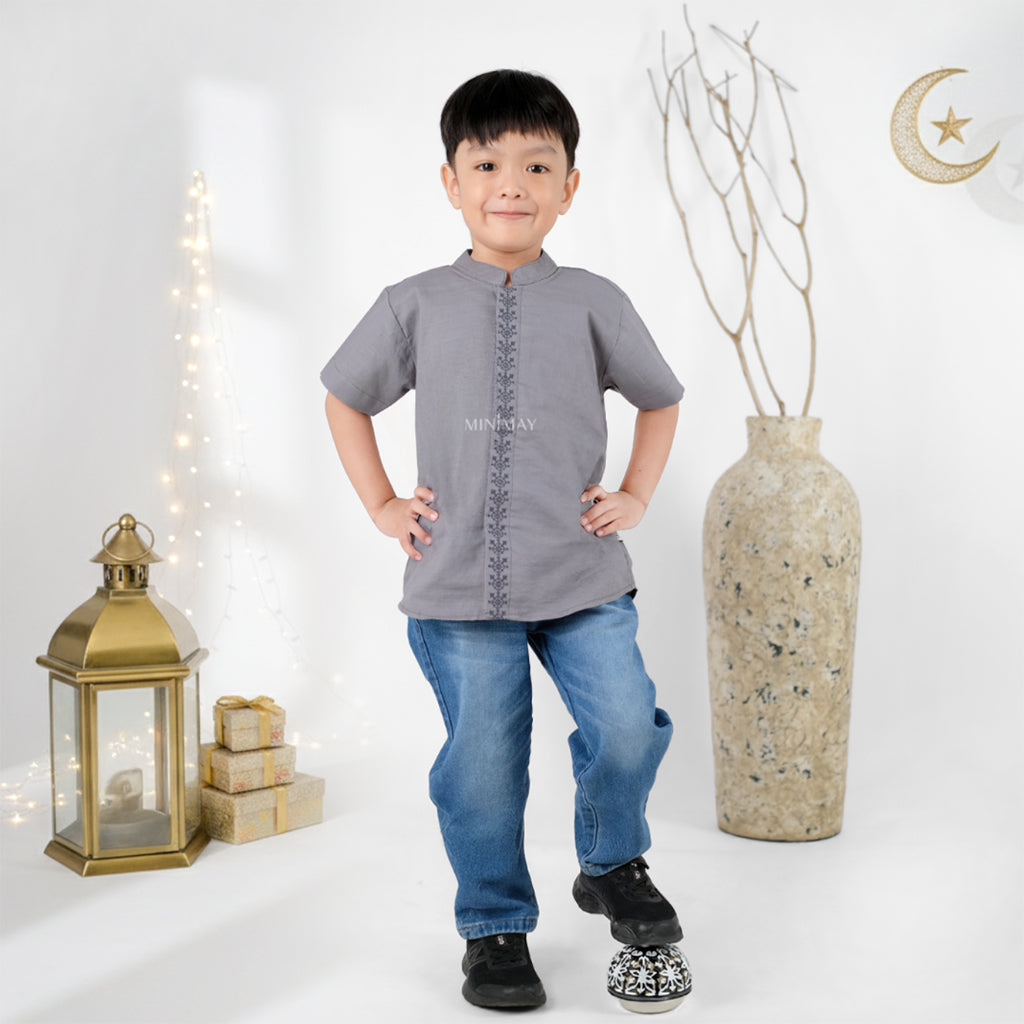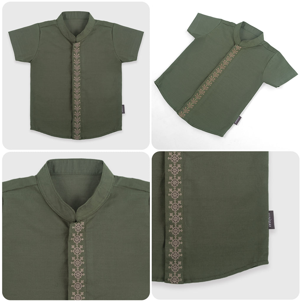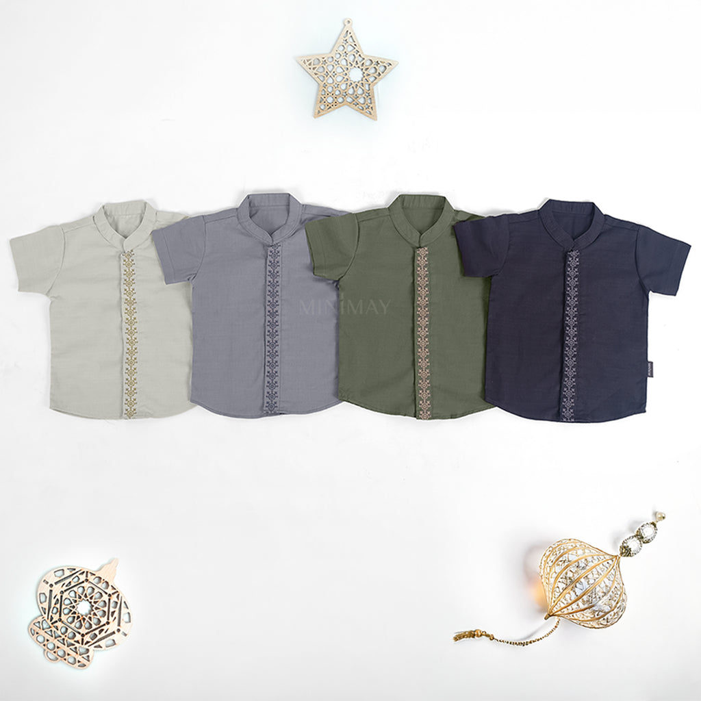 Kemeja yang didesain dengan aksen bordir dan terdapat kancing hidup yang dapat dibuka.